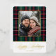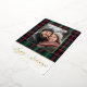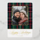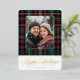 Share your holiday cheer in style with this rustic plaid Christmas card, featuring a cosy red, green, black, and white background and a rounded corner gold foil frame for your favourite family or couple photo. Elegant gold foil script on a soft white background delivers your holiday greetings, while your last name adds a personal touch. Created by Simply Farmhouse Press.