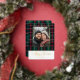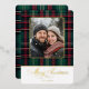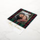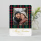 Share your holiday cheer in style with this rustic plaid Merry Christmas card, featuring a cosy red, green, black, and white background and a rounded corner gold foil frame for your favourite family or couple photo. Elegant gold foil script on a soft white background delivers your holiday greetings, while your last name adds a personal touch. Created by Simply Farmhouse Press.