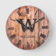 Rustic Planks Wood Custom Family Initial Farmhouse Round Clock