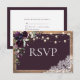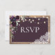Rustic Plum Purple Floral Lace Wood Wedding RSVP Card
