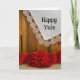 Rustic Poinsettia Flower and Red Ribbon Happy Yule Holiday Card