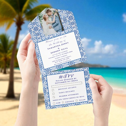 Portuguese tiles, Mediterranean, rustic Wedding invitation. Personalise it with your details.