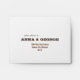 This envelope, with a large cream and white star burst on the outside, has a customisable address printed on the front. This envelope is intended to be used as a return envelope for RSVPs - you can clear the front address if you'd like to use it for another purpose. The inside lining is a dark brown and cream scallop pattern.