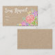 A song request card for a wedding with a pretty floral design on a rustic kraft paper background. The floral pattern features roses, daisies and leaves in a variety of pastel colours with a white outline. The words "song request" are written in a fashionable brush script in white. The idea is that you send these cards with your wedding or party invitations so that your guests can fill out a song they would like to hear the band or DJ play. Alternatively, you could leave these on the tables at your reception for people to fill out at the event. The back is left black for you to address to each guest individually, as you may want to include multiple song request cards with each invitation. These would be perfect for anyone hosting a large wedding or party.