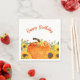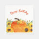 Celebrate in cosy autumn style with these rustic pumpkin birthday napkins. Featuring a watercolor pumpkin surrounded by bright sunflowers and fall foliage, they’re perfect for seasonal birthday parties, harvest celebrations, and farmhouse-themed gatherings