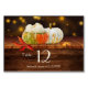 Table number card featuring colourful pumpkins and fall leaves on a rustic wood and sparkling lights background. This table number card is part of a wedding collection and great for an autumn wedding or also for a Thanksgiving celebration.