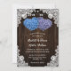 These rustic purple and blue floral wedding invitations featuring two heart-shaped hydrangea flowers on a barn wood background adorned with white floral lace and string lights are perfect for inviting your guests to your purple and blue rustic wedding party. Matching items available.