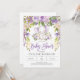 Rustic purple floral girl elephant baby shower invitation