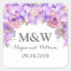 Wedding monogram favour tag stickers in a rustic pattern with pretty purple vintage watercolor wildflowers. A great way to decorate wedding favours.