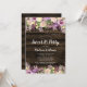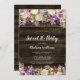 Elegant purple watercolor flowers and greenery decorate this country sweet 16 birthday party invitation. This design features strings lights and a dark barn wood background, with a modern calligraphy script font. Perfect for a western themed sweet sixteen!