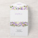 Elegant all in one wedding trifold invitation featuring a chic white background that can be changed to any colour, a photo of the happy couple, elegant purple & lavender watercolor florals, wedding invite, and an rsvp menu option postcard for your guests to tear off and send back.