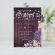 Pretty watercolor purple and orange flowers with sage green leaves feature on this rustic wood and strings of lights wedding invitation. Perfect for a purple and orange themed barn, woodland, fairytale, wedding. Text template fields both ensure extra details such as rsvp, directions, gift registry can be included without extra cost.