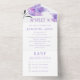 Purple lilacs watercolor, girly Sweet Sixteen All in One Invitation. Lilacs flowers illustration. Tri-fold elegant, chic, unique, invitations. Customise with your details. Order in time to avoid a disappointment.
