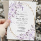Elegant and feminine First Communion invitation features beautiful pale lavender purple roses and white magnolia flowers decorating an oval gold frame. All of the text is editable so you can also use it for any type of religious ceremony, Baptism, Christening, Dedication or Confirmation.