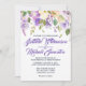 Romantic soft purple and white floral design is perfect for a spring or summer wedding. In addition to the soft purple flowers, there are smaller dark purple and creamy white watercolor flowers. There are a variety of leaves that give the floral design a light and airy quality. The wedding couple names are written in a gorgeous formal script in purple. The remainder of the text is an elegant black font. The back of the wedding invitation is deep purple with a large coordinating floral bouquet. This modern floral wedding invitation is part of a wedding stationery suite that should be visible on this page. If you don't see it, please contact me for the link.