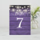 These stylish rustic purple wood string lights double-sided table number cards are perfect for all celebrations. Designed by Thisisnotme©