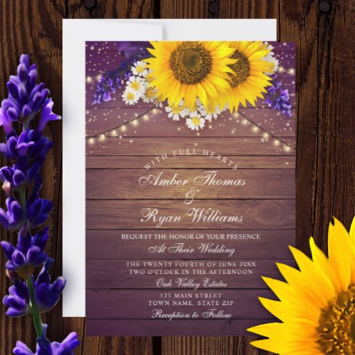 Rustic Purple Yellow Sunflower Floral Country Barn Invitation