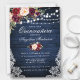 Rustic Blue Wood String Lights Lace Burgundy Watercolor Floral Quinceanera Invitation