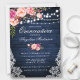 Rustic Blue Wood String Lights Lace Pink Blush Watercolor Floral Quinceanera Invitation