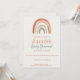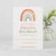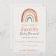 Invite loved ones with this modern baby shower invitation, highlighted by a hand painted rustic rainbow in warm, earthy tones. The playful combination of textured serif and contemporary script fonts adds a whimsical touch, while the clean, minimalist layout keeps things fresh and inviting. Designed for a relaxed, gender neutral boho celebration, this card features a harmonious palette of rust, peach, beige, and sage green perfect for creating a cosy, stylish atmosphere for your special day.