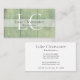 Here's a great business card for anyone in a field that works with aged, distressed, reclaimed wood, such as woodworking, carpentry, furniture makers, or crafters. It is also a good choice for song writers, musicians, singers, or creatives who love the rustic look. This card uses pale green weathered wood as a background for your monogram initials, business name, and occupation. Both the front and back of the card is completely customisable, so you can change, add or remove any text in the areas provided. If you have a design question or would like to see this design on another product, feel free to contact me at jschmidtdesignworks@gmail.com.