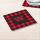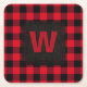 Rustic Red and Black Buffalo Plaid Monogram Square Paper Coaster