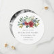 Simple and pretty rustic red and blue watercolor bouquet one photo wedding save the date card.