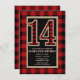 Rustic Red Black Buffalo Plaid 14th 14 Birthday Invitations.