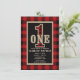 Rustic Red Black Buffalo Plaid 1st Birthday Party Invitation