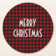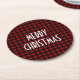 Rustic Red & Black Buffalo Plaid Merry Christmas Round Paper Coaster