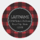 Rustic Red Black Buffalo Plaid Pattern Monogram Classic Round Sticker
