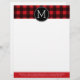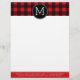 Rustic Red & Black Buffalo Plaid Pattern Monogram Customized Letterhead