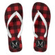 Rustic Red & Black Buffalo Plaid Pattern Monogram Jandals