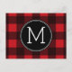 Rustic Red Black Buffalo Plaid Pattern Monogram Postcard