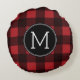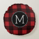 Rustic Red & Black Buffalo Plaid Pattern Monogram Round Cushion