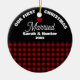 Commemorate your engagement with this charming rustic Christmas ornament from Plaid Perfection. Designed with a split background—classic red and black buffalo plaid on the bottom and sleek black on top—this festive ornament features the phrase *Our First Christmas Married* curved along the top. Personalise with the couple’s names and year to create a keepsake that celebrates love and new beginnings. Perfect as a gift for engaged couples or as a special addition to your own tree, this round ornament is a timeless way to mark this milestone and treasure the memory for years to come.