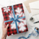 Rustic red black plaid pattern frosty snow flake wrapping paper