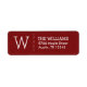 Affordable custom printed return address labels with sleek simple typography on a rustic red faux burlap background. Personalise it with your monogram initial, name and address or other custom text. Use the design tools to edit text fonts and colours, resize or move text around to create a unique one of a kind label design. Perfect for mailing wedding invitations or any other personalised stationery!