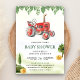 Amaze your guests with this elegant farm theme baby shower invite featuring a beautiful red tractor and lush green trees. Simply add your event details on this easy-to-use template to make it a one-of-a-kind invitation.