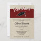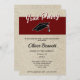Rustic Red Graduate Cap Graduation Party Invitation. Graduation invitation with graduation cap on a dark red background. The text is on a beige rustic background. Personalise with your text.