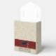 Rustic Red Graduate Cap Graduation Thank you Favour Box. Graduation thank you favour box with graduation cap, text Thank you, a name of the graduate, class of and thank you note. The text is on a beige rustic background.