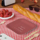 Rustic red merry + bright holiday paper plates. These christmas paper plates feature a deep red background with white typewriter text. All text can be customised and replaced with any text of your choice.