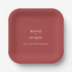 Rustic Red Merry + Bright Family Name Christmas Paper Plate