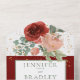 AVAILABLE WITH OR WITHOUT A QR CODE TO SCAN. This beautiful soft marsala red, blush pink, light blue and green bouquet cascades from the top of the card over a rich red background, speckled with gold. Beautiful, elegant, and rustic. Add a QR code to your invitation so that gusts can quickly access your wedding Website for details, directions, menu options, and more, or add your gift registry Web URL. Personalised All-In-One invitations are a unique combination of both a beautifully printed custom invitation with an easy to tear off perforated RSVP postcard. And they are so easy to use! You simply fold, then seal the back flap with the three included clear stickers, and mail. And when your guests receive your custom invite, they just tear the perforated RSVP Card off and drop it back in the mail to you!