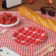 Rustic red plaid bears paper plates
