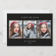 This trendy rustic Christmas greeting features a red plaid print with a touch of faux gold on the back. This lends a modern glam touch to a traditional holiday pattern. The front offers a three photo grid with a gold colour frame, "Happy Holidays" typography, and an elegant black background.