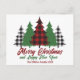 Rustic Red Plaid Merry Christmas Happy New Year Holiday Postcard