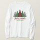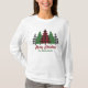 This custom rustic holiday long sleeve women's t-shirt features trendy red plaid and green Christmas trees above your message Merry Christmas. A cute personalised and traditional look that is currently in style again, this festive design is perfect for a family reunion. Classic and nostalgic design.