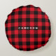 Rustic Red Plaid Pattern Holiday Personalised Round Cushion
