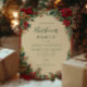 A festive Christmas party design framed with classic red poinsettias, pine branches, and winter greenery. The rustic vintage style captures the warmth and cosiness of the holiday season, perfect for a traditional Christmas celebration.